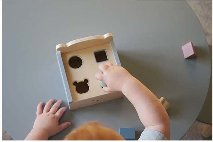 199,00 krTräleksak Sorteringslåda Teddy från Jabadabado med fyra olikformade hål och lika många träbitar som ska passas igenom. Med sorteringslådan lär sig barnet att tänka logiskt med hjälp av former och färger samtidigt som finmotoriken tränas upp.