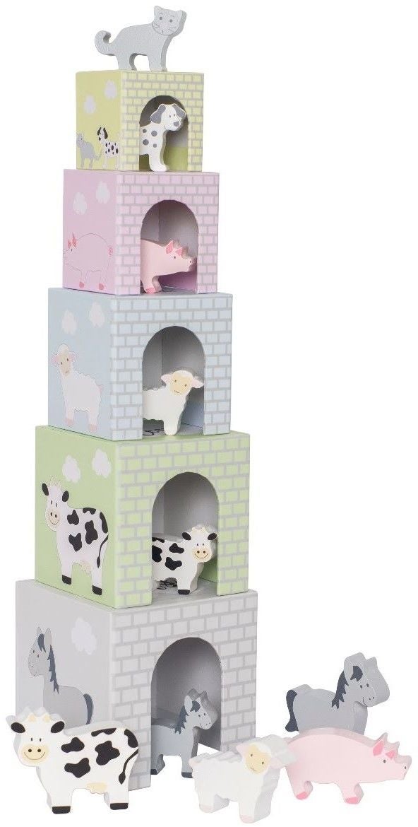 – 5 stapelbara kuber med söta djurmotiv.